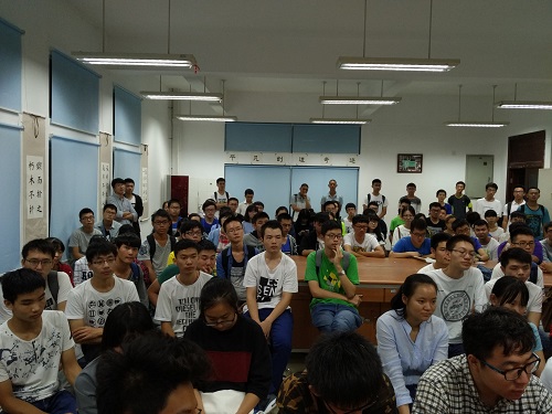 晚上7:10,例会准时开始。首先,电子科技园副主席李家辉同学对干事们的到场情况进行了统计。接着按照主席团、技术部、宣传部、外联部、行政部的顺序,主席以及各部门的部长们进行了简略的自我介绍。自我介绍期间,有两名电子科技园曾经的部长也将自己的经历与大家分享,干事们听得津津有味。简短的自我介绍结束后,电子科技园主席魏鹏锦同学对干事们加入科技园表示由衷的欢迎,随后列出了科技园近期的工作活动,并详细地讲述了科技园的考核制度,其中包括对会议出勤的考核以及对技术的考核等。干事们均认真听讲,时不时低头记录。接着,技术部部长聂承源同学对科技园的教学计划作了明确的说明,并介绍了在教学过程中所需要的教材。宣传部、外联部、行政部的部长也分别谈了谈对干事们这一年的期待。最后,电子科技园副主席李家辉及王婧璇同学对会议内容作了总结,呼吁大家将科技园当作另一个家,希望大家都能在这里感受到温暖。