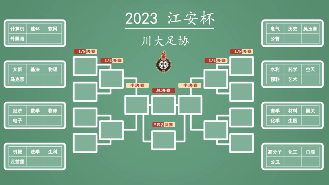 江安杯的赛场上,承载了无数川大足球人的回忆。各支球队都踌躇满志,在新的春天再出发;绿茵场上的从风奔跑,是川大少年的飒爽英姿。让我们一起期待2023年江安杯赛场上,各位球员的精彩表现!