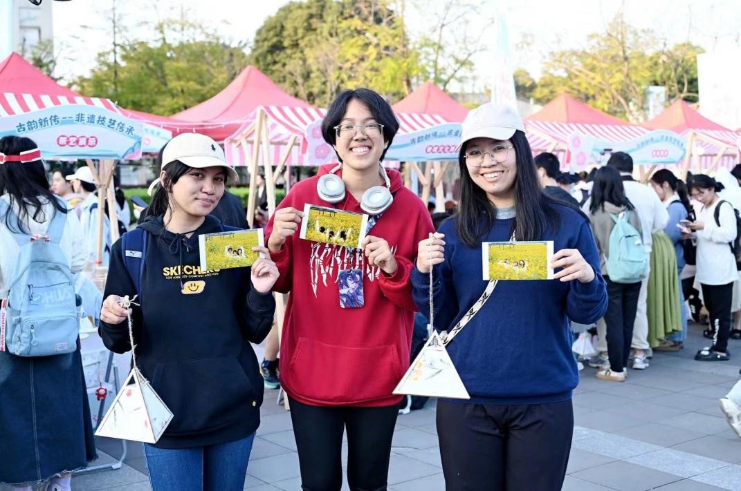 在四川大学江安校区国风市集活动现场,学生们尝试制作精美的头饰,感受簪花的独特魅力,参与中药知识问答,了解中药文化的博大精深,还体验了蹴鞠、踢毽子、丢沙包等传统运动项目。