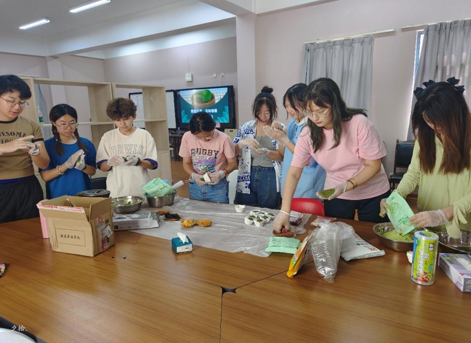 5月25日,华西公共卫生学院公共营养协会于江安校区西园12舍活动室举办了一场别开生面的青团制作活动。活动通过介绍青团制作方法、同学们亲自动手制作、打包完成和最后合影拍照等环节,让同学们深入了解并体验了传统美食的制作过程,同时也增进了同学们之间的友谊和团队凝聚力。本次青团制作活动不仅培养了同学们的动手实践能力,增进了同学们之间的情谊,还让他们深入了解了传统美食的制作过程和文化内涵。