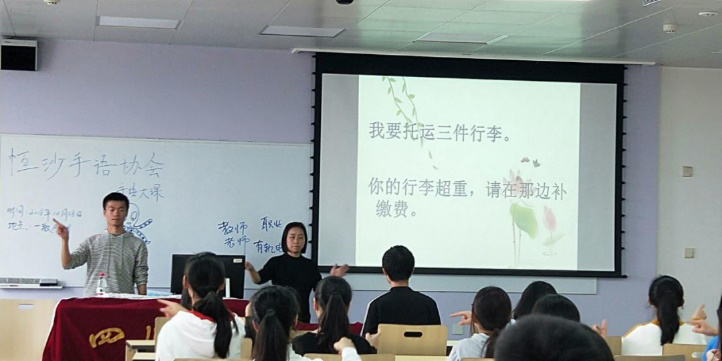 恒沙定期开展手语教学大课,邀请专业指导老师向社团成员们教授日常基础手语。手语大课合理的安排了活动时间与内容,主要分为手语教学、趣味游戏、答疑交流这三个内容。为吸引社团成员积极参与,每次手语大课都有准备精美的零食与小奖品,充分调动了社团成员的积极性。