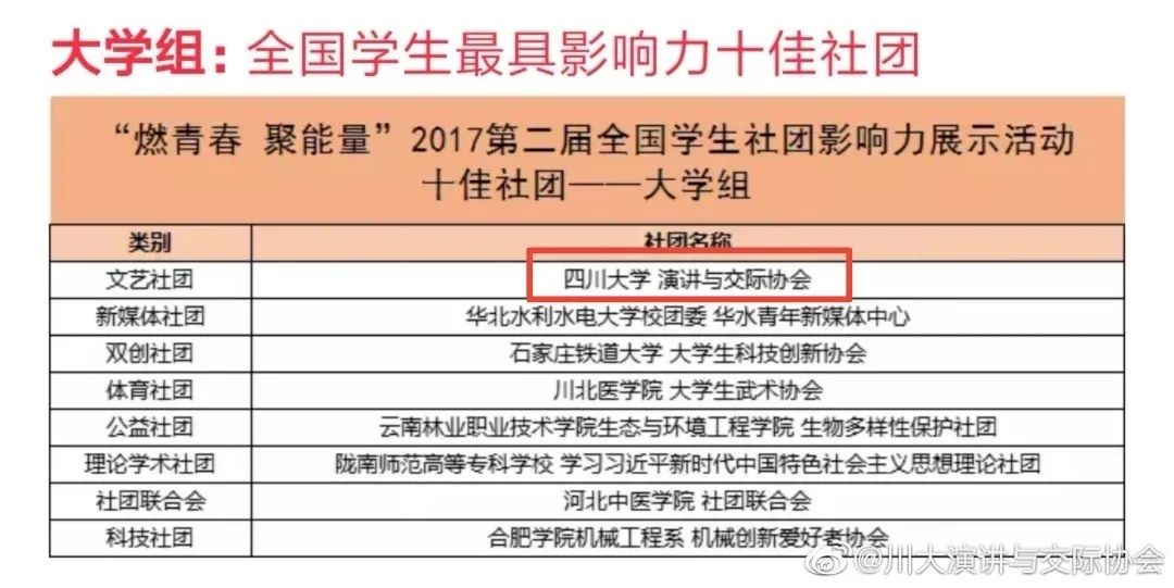 2003-2019年:蝉联四川大学“十佳学生社团”