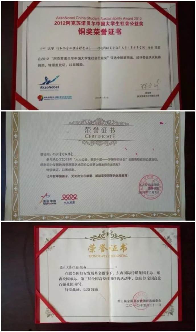 四川大学行知协会是一个以举办公益活动为主的协会,获得过许多荣誉证书。